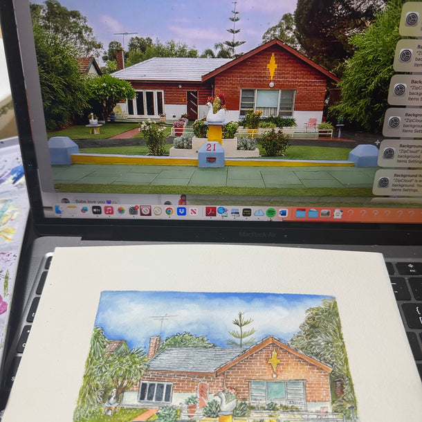 Capture the heart of your home in timeless watercolour. I offer bespoke A5 watercolour house portraits for $200 — the perfect keepsake to celebrate a family home, commemorate a move, or gift to a loved one. Each painting is hand-crafted with fine detail and care, turning your house into a cherished piece of art that will last for generations. Please click here to order and attach your house for me to paint from.
